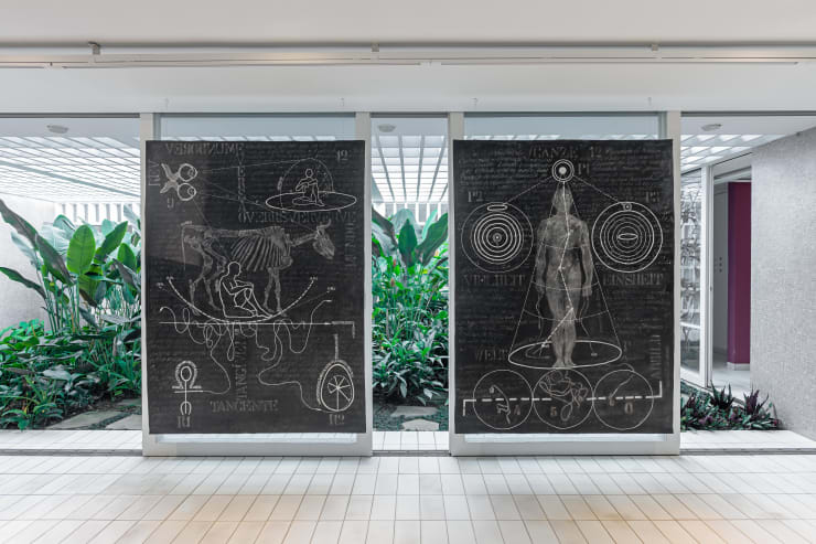 1957, Salvador, Brasil. Vive e trabalha em São Paulo, BrasilRita Damasceno iniciou sua trajetória como artista ainda no começo dos anos 1980, quando morava na Alemanha, país em que viveu por trinta anos. Começou trabalhando com desenho, pintura e escultura. Sua formação em Filosofia e Ciências Políticas oferece o embasamento intelectual para sua investigação, que trata especialmente de questões universais e existenciais do ser humano e inquietações da contemporaneidade. Conhecida pelos seus 'diagramas', Rita Damasceno trabalha a representação visual dos pensamentos por meio de narrativas dialéticas que combinam imagem, estética, texto e cognição, propondo exercícios de reflexão como formas de indagar o mundo.Aos 16 anos de idade, Rita Damasceno mudou-se para a Alemanha, onde realizou graduação e mestrado em Filosofia e Ciências Políticas pela Universidade de Colônia, de 1984 a 1991, período em que também frequentou aulas de Joseph Beuys, pela Universidade de Düsseldorf. Em 2011, a artista voltou ao Brasil, onde formou-se bacharel em Artes Visuais na Fundação Armando Álvares Penteado - FAAP, em 2015. Dentre as exposições que participou destacam-se "Avesso", na Galeria Superfície (2016, São Paulo), além de coletivas, como no Itaú Cultural (2016, São Paulo) e Anual de Arte - MAB FAAP (2012 e 2013, São Paulo).